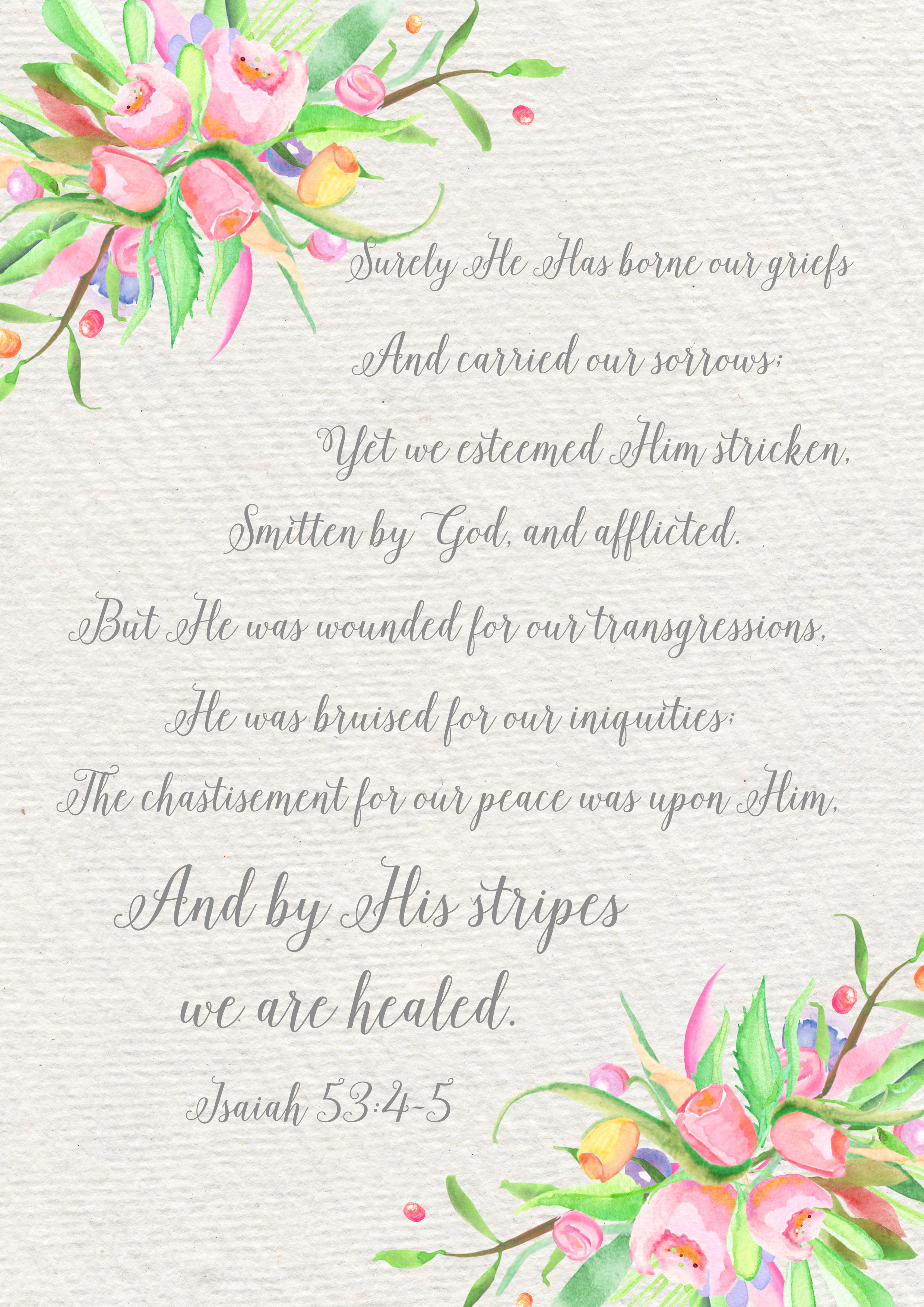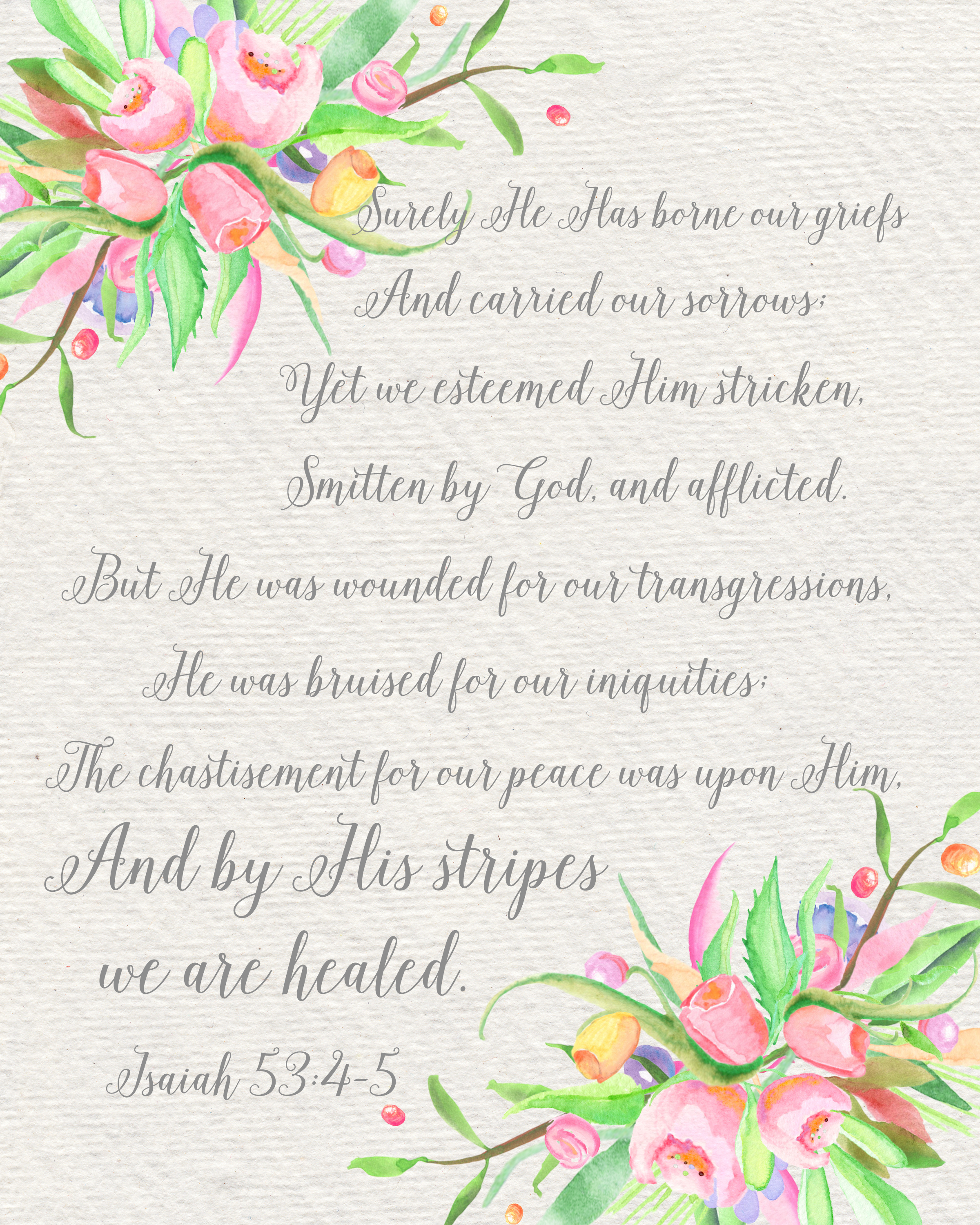 Download a FREE printable of the scripture Isaiah 53:5 – “…and with his stripes we are healed.”